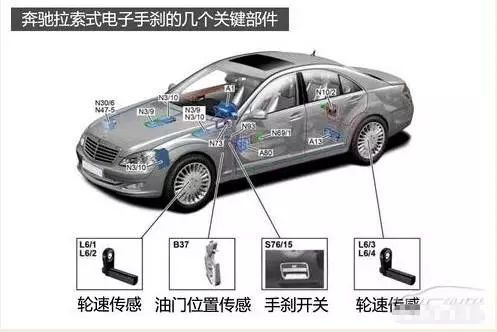 了解了拉索式電子手剎的結(jié)構(gòu)后,我們再來了解一下其工作邏輯。我們下面以奔馳配置于09年以后車型的拉索式電子手剎為例進(jìn)行說明。